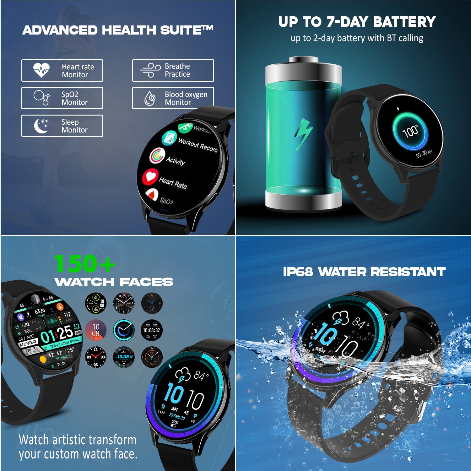 This EVO VISTA Smartwatch Elevate your daily lifestyle, that smartwatch comes with Amoled Display,bluetooth calling, smooth dial touch screen, Health monitoring, 100+ Sports mode 150+ multiple watch faces, fitness tracking, received all social media notification, calculator, Music and 1 game, you can use friendly for 5 to 7 days battery backup with 10 days with IP67 water résistance