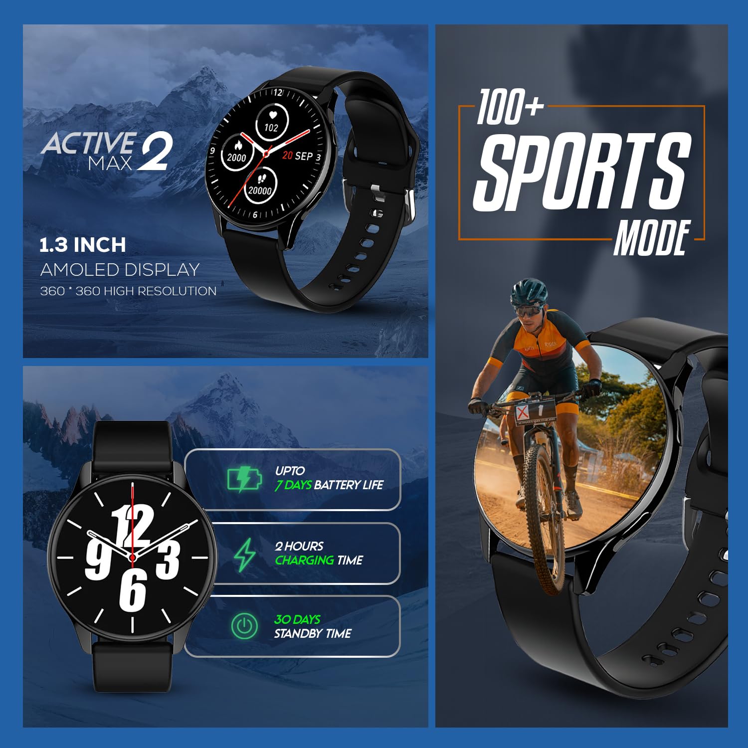 - 100+ Sports Modes – Track workouts, steps, calories & more